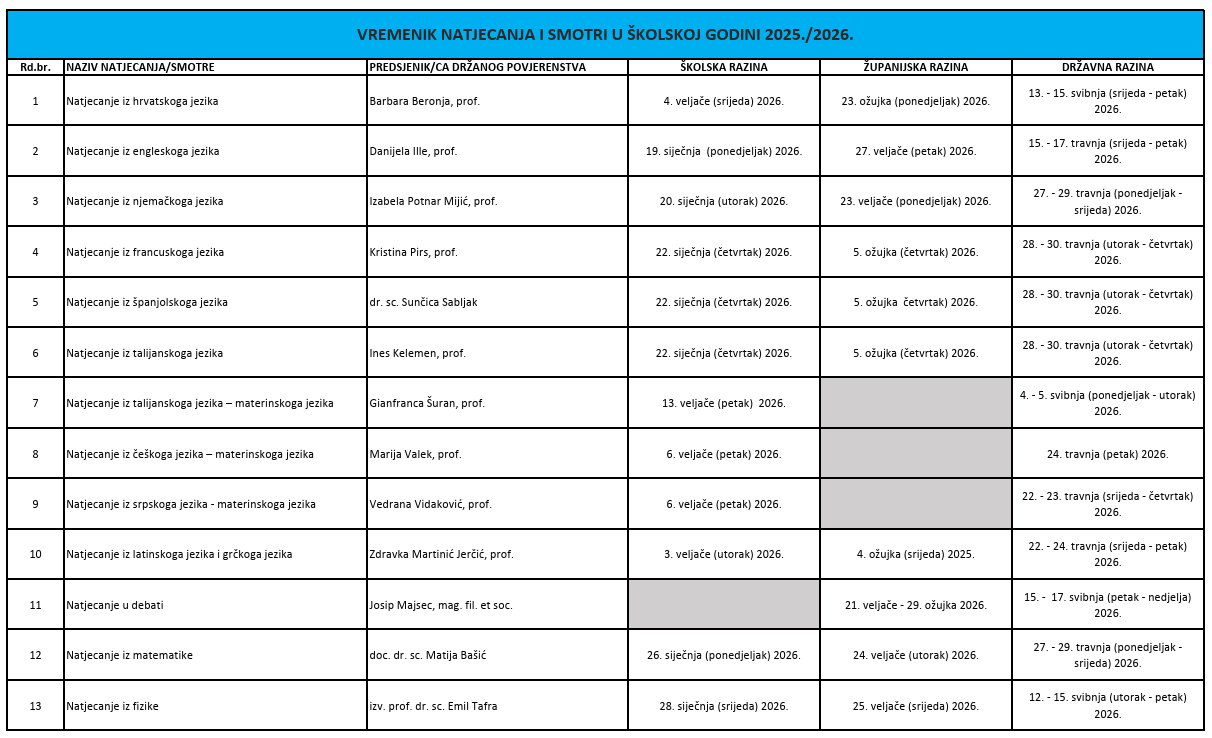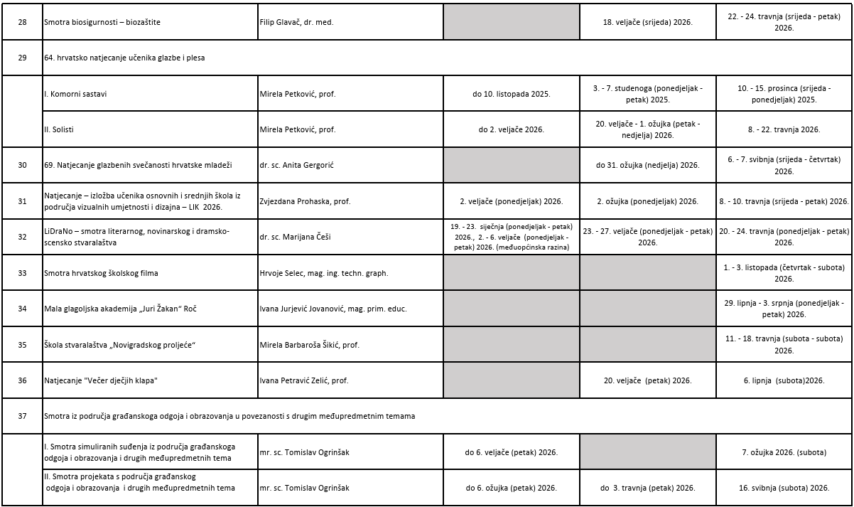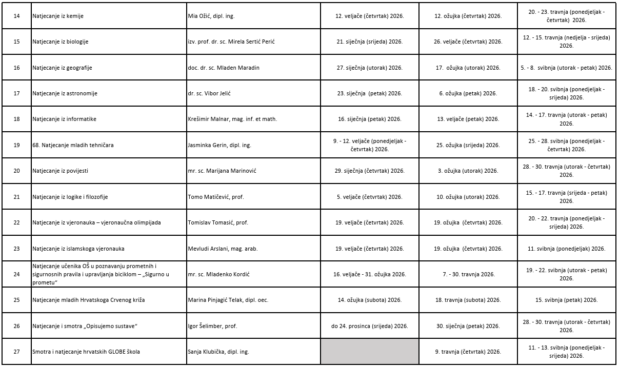 Objavljeni datumi održavanja natjecanja i smotri učenika osnovnih i srednjih škola u školskoj godini 2024./2025.