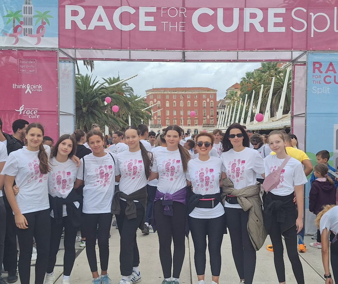 Na ovogodišnjoj humanitarnoj utrci Race for the Cure koja se održala u nedjelju 5.10. u 11 sati na Splitskoj rivi sudjelovao je i tim naše škole. Učiteljice Marinković i Lozić s grupom učenica sedmog i osmog razreda trčale su utrku od 5km kao podršku ženama oboljelim od raka dojke. Sudjelovanjem u ovoj ružičastoj trci podržali smo lijepu priču o humanosti, empatiji, podršci i zajedništvu koju već sedmu godinu za redom organizira Županijska liga za borbu protiv raka.